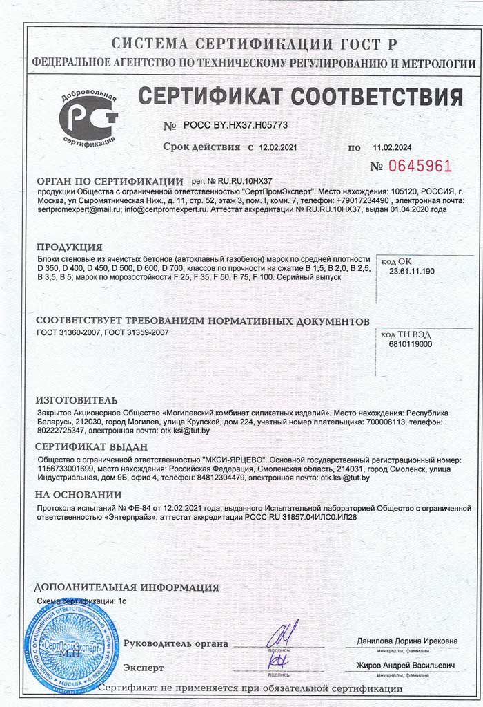 Газобетон Могилевский КСИ D500 300x250x625 мм